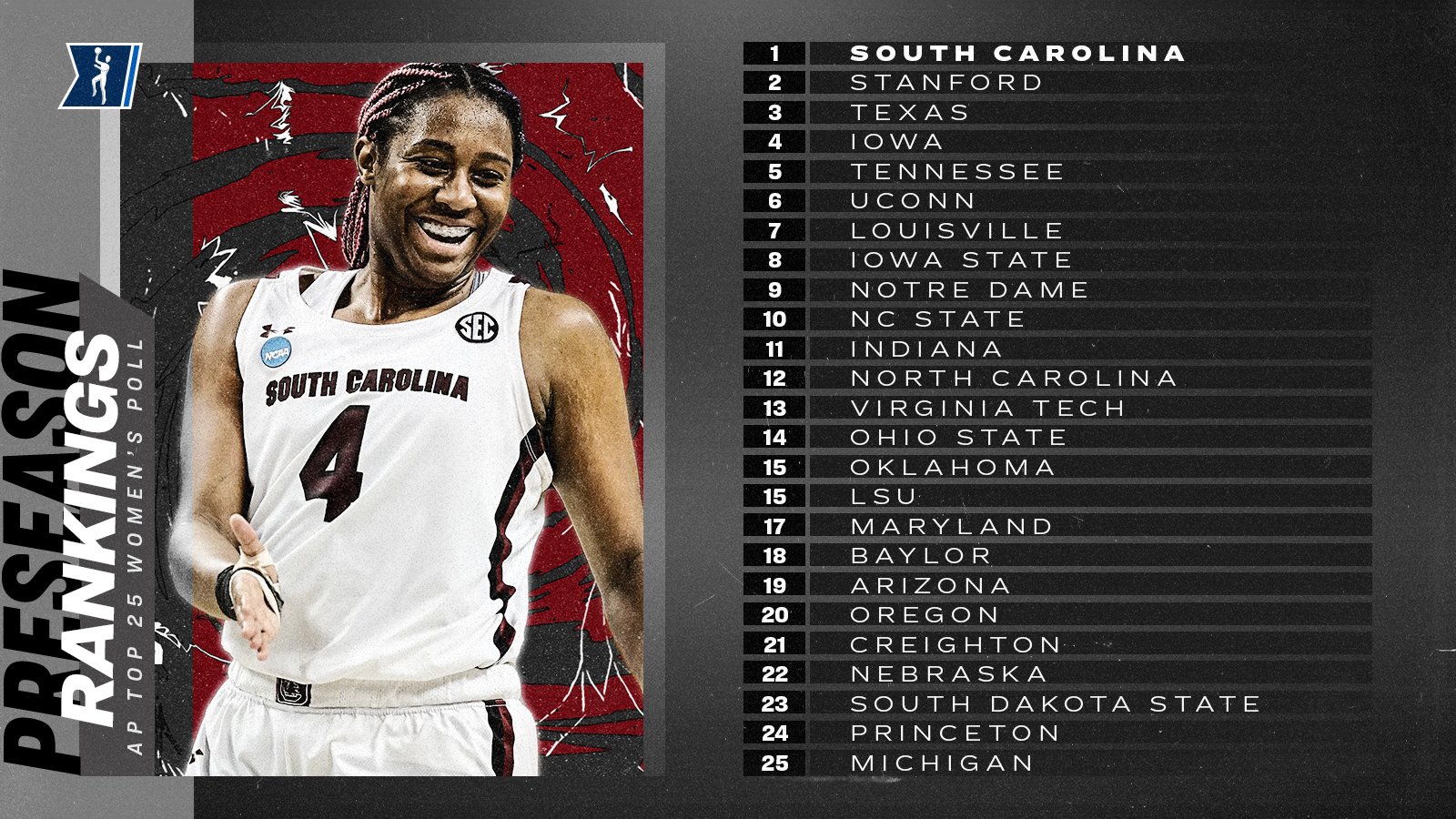 Ncaa March Madness On Twitter Ap Top25 Preseason Poll Update 1 South Carolina 2 Stanford 3 Texas 4 Iowa 5 Tennessee 6 Uconn 7 Louisville 8 Iowa State 9 Notre Dame 10 Nc State Ncaawbb Https T Co Nfoyta0kxl Twitter